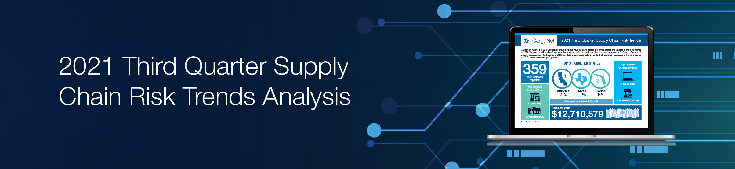 Entering into the final quarter of 2021, CargoNet expects that theft activity will remain elevated. We are concerned about targeting of computer electronics shipments shipping from California, as well as a breakout of full truckload cargo thefts spreading across the eastern half of the United States. CargoNet continues to track these events and work with law enforcement agencies across the country to share information and recover stolen vehicles and goods.